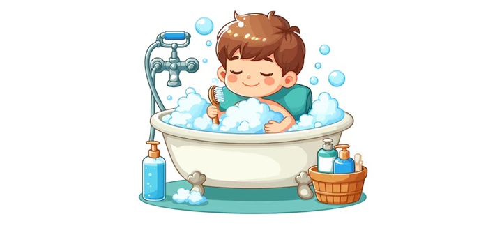 - Er wäscht sich die Füße. – El își spală picioarele.